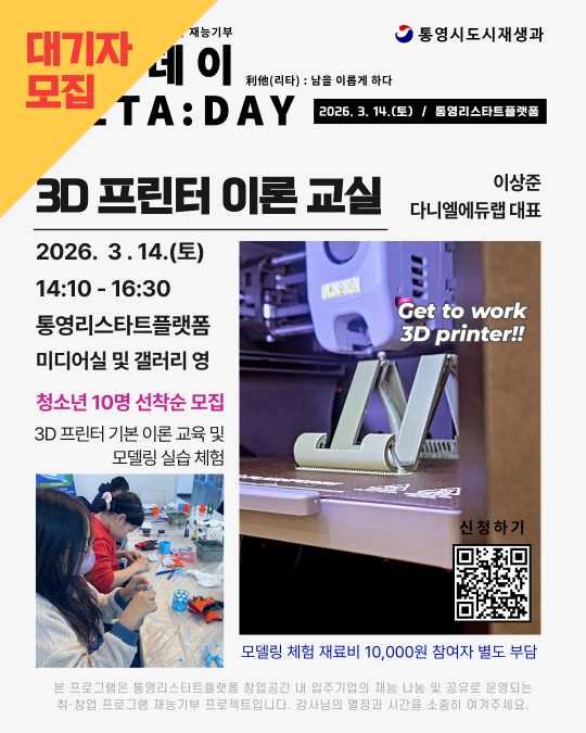 2026.03.14 (토) 리타데이 <3D 프린터 이론 교실> 대기자 모집